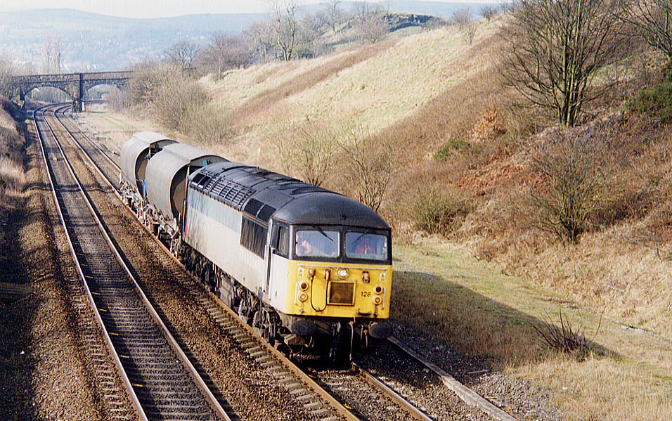 56128 approaching Cooperative Bridge with the bridge at Leaden Knowle in the background, problems with shadows from trees if the sun is not high.11-3-99